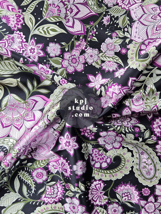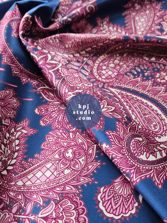 Pink & Blue Intricate Paisley Eco Gloss Satin Fabric